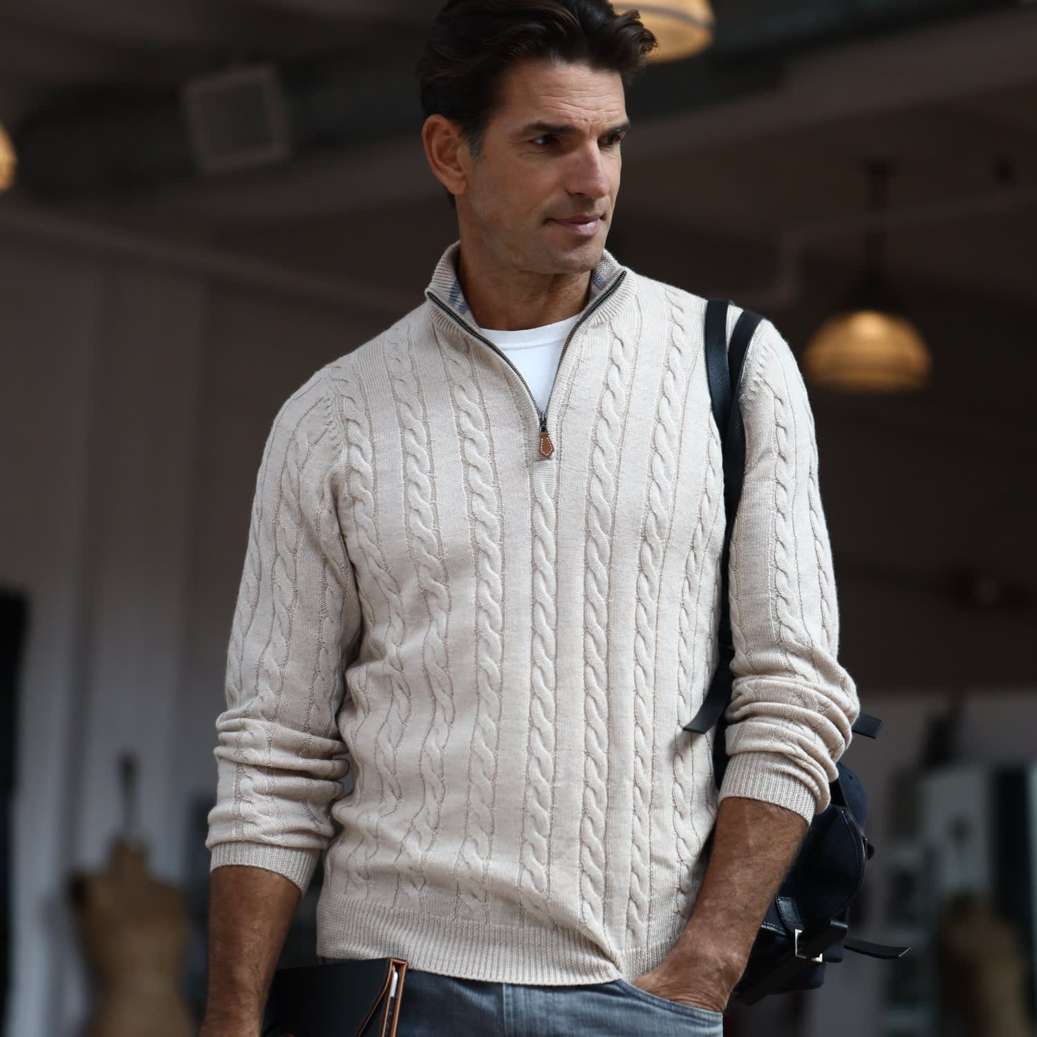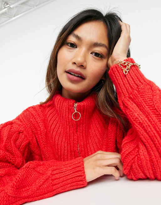 Half zip cable knit sweater. Maybe you would like to learn more about one of these? We did not find results for: Check spelling or type a new query.
